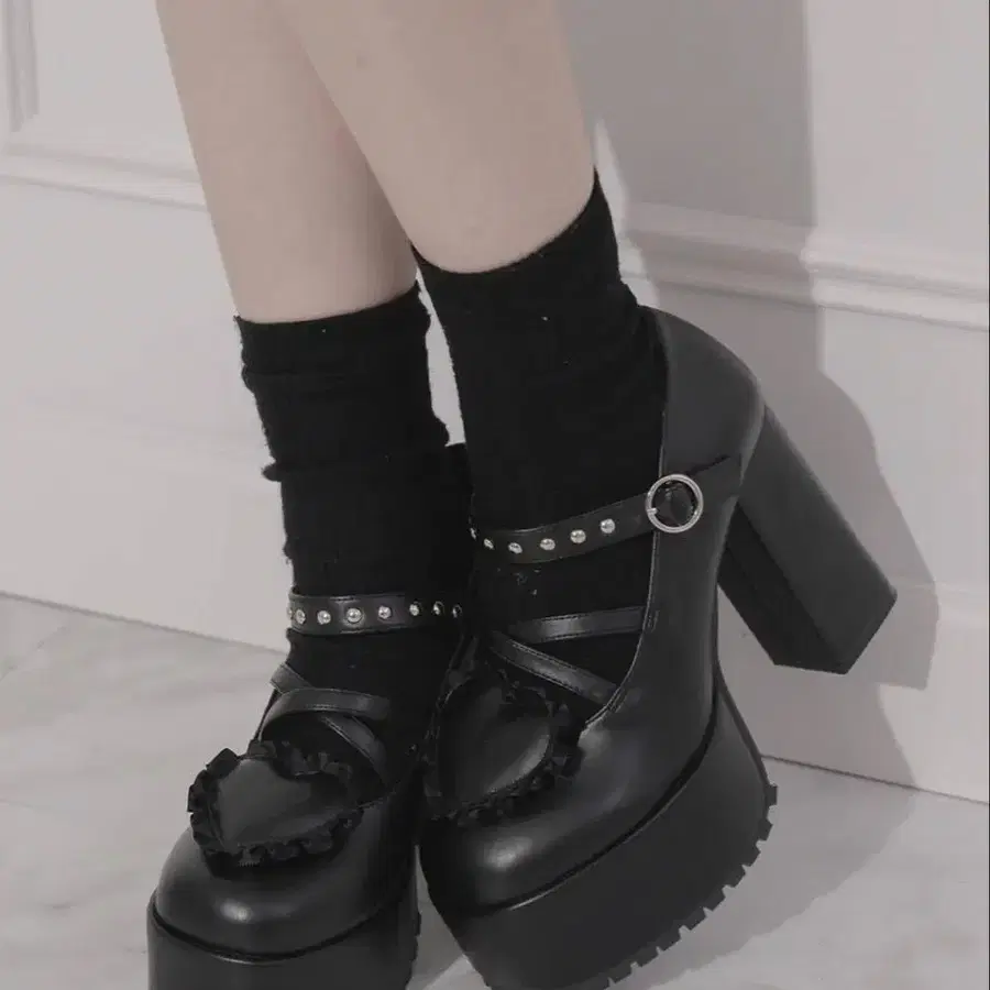 블랙 가죽 S 사이즈입니다. 힐 부분에 약간의 흠집이 있습니다. 부속 클립은 리본만 사용했으며, 하트는 한 번도 사용하지 않았습니다.