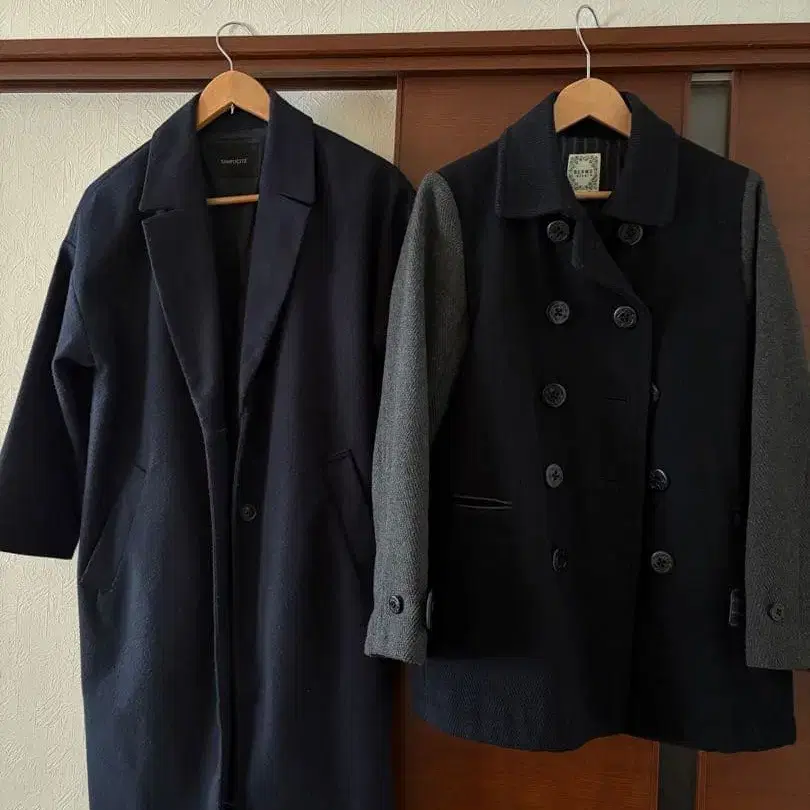 • 네이비 더블 브레스트 피 코트