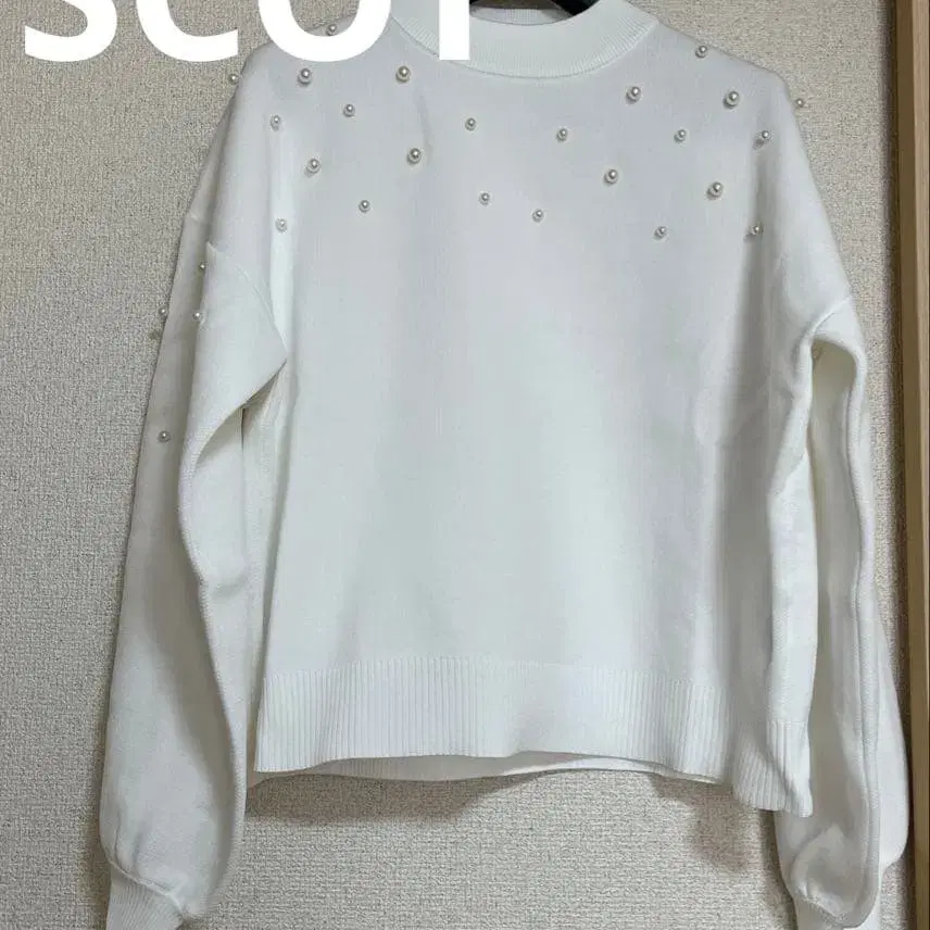 [ 미사용 새상품 ] 야마다야 스콧 클럽 뱅 화이트 펄이 달린 돌먼 상의 가벼운 소재의 니트 정가 17000엔 M 사이즈 오버 사이즈입니다 총장 약 57cm 가슴 너비 약 59cm 목부터 소매 약 80cm