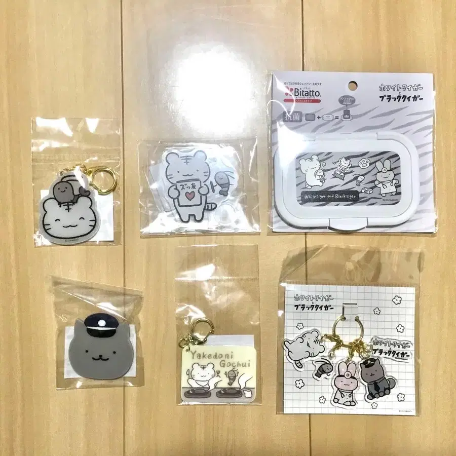 화이트 타이거와 블랙 타이거 굿즈 6개 세트입니다. 5단 아크릴 키링 집합 렌티큘러 아크릴 키링 화이트 타이거와 블랙 타이거 아크릴 키링 화상 주의 아크릴 펜 스탠드 화이트 타이거 다이컷 아크릴 배지 순경 비타트 원푸시 호랑이 무늬 모두 새상품입니다.