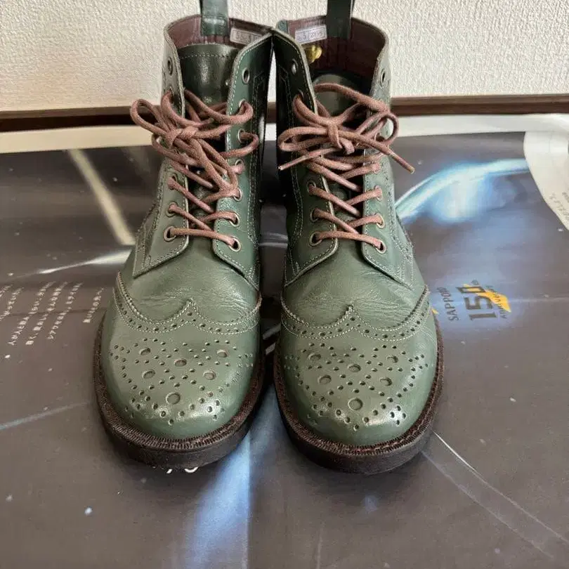 TODAY'S 천연 가죽 부츠 윙팁 레이스업 그린 23.5cm