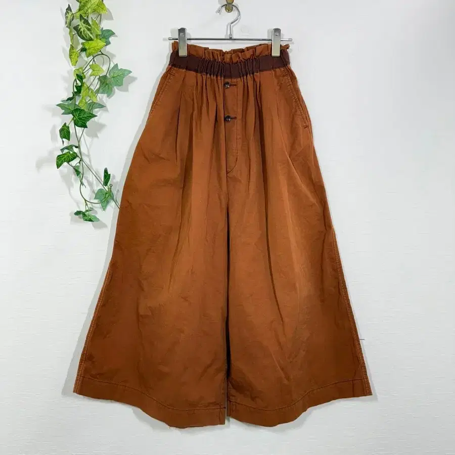 앤트게이지의 볼륨감이 멋스러운 가우초 팬츠입니다. 깊이 있는 브라운 컬러가 성숙한 느낌을 주며, 면 100%의 부드러운 질감으로 착용감 또한 뛰어납니다. 허리는 밴딩 사양에 드로 코드가 있어 체형에 맞게 조절 가능합니다. 넉넉한 와이드 실루엣이 체형 커버를 해주면서도 세련된 캐주얼 스타일을 연출합니다.