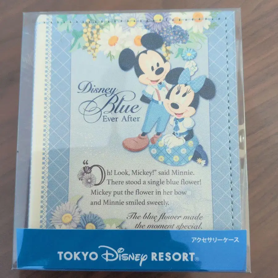미키와 미니 디자인이 적용된 블루 액세서리 케이스입니다. - 브랜드: 도쿄 디즈니 리조트 - 캐릭터: 미키, 미니 - 디자인: 블루 꽃무늬