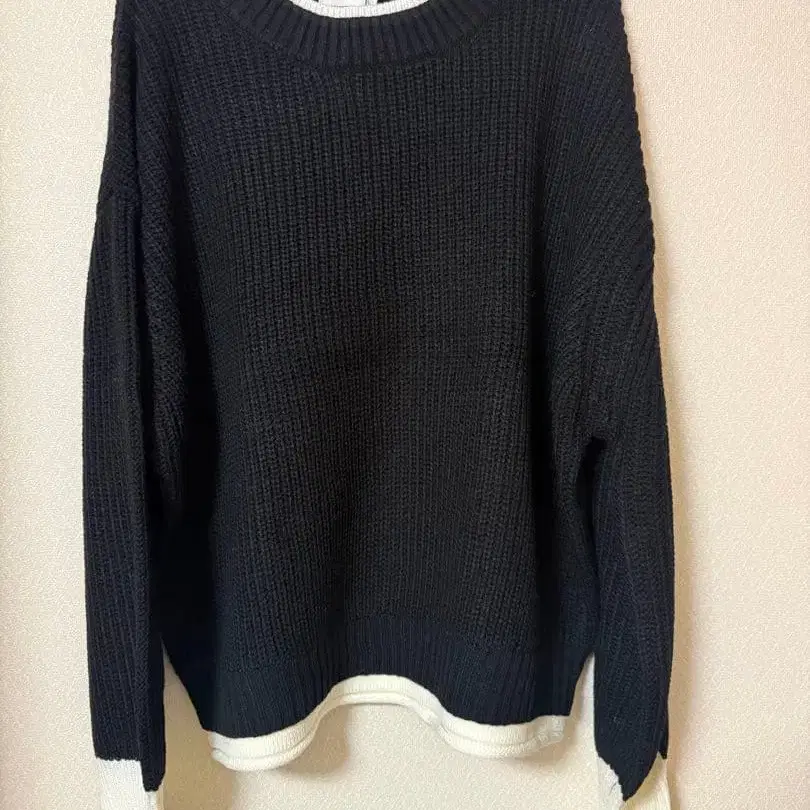 소매와 밑단의 배색이 귀여운 니트입니다. [ 소재 ] 아크릴 100% [ 사이즈 ] 프리 기장 68cm / 가슴 너비 69cm ※ 넉넉한 사이즈입니다. [ 정가 ] 10,780엔 [ 색상 ] 블랙, 목둘레와 소매, 밑단은 화이트 [ 상태 ] 2025년 연말 구매, 택 포함 새상품 사이즈 - FREE SIZE