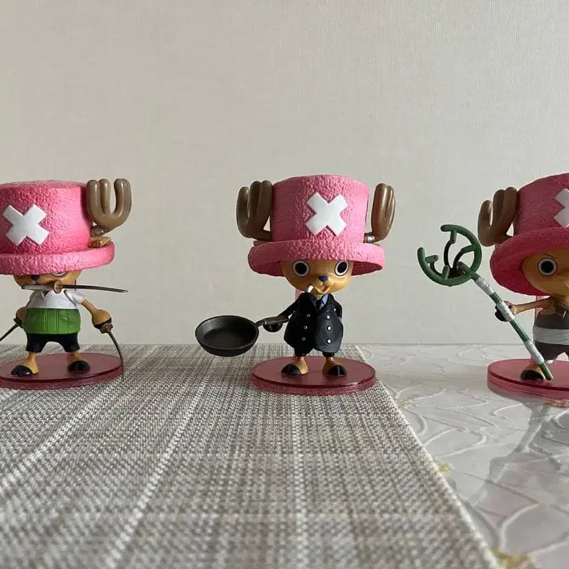 토니토니 초파 3체 세트, 핑크색 모자가 특징입니다. - 캐릭터명: 토니토니 초파 - 세트 내용: 3체 세트 조로, 상디, 우솝 의상 3체입니다. 방문해 주셔서 감사합니다.