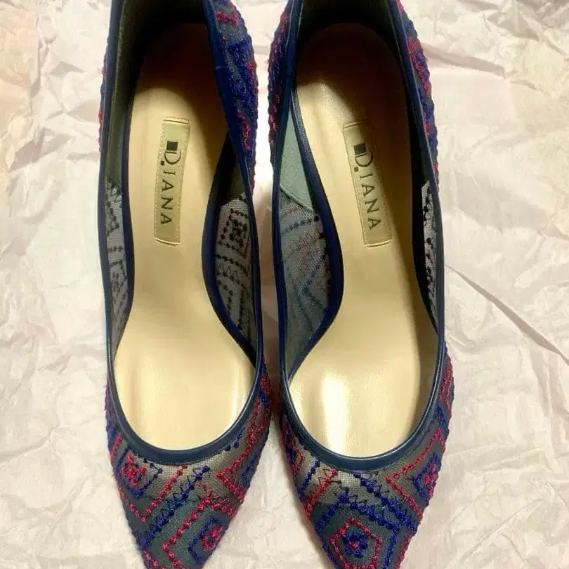 ///상자 없음/// 자수 디자인의 네이비와 레드의 스틸레토 하이힐. 기하학 패턴 자수가 귀여워요 ♡ - 브랜드: DIANA - 색상: 네이비/레드/베이지 - 디자인: 자수 디자인 - 스타일: 스틸레토 - 타입: 하이힐 방문해 주셔서 감사합니다. 사이즈 - 23.5cm