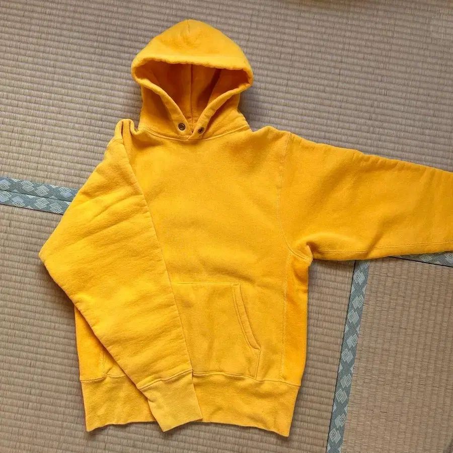후드 부착 후드티 캥거루 포켓 부착 색감은 옐로우 컬러 같기도 하고, 망고 오렌지 컬러 같기도 합니다. 어깨 너비 / 가슴 너비 / 소매 길이 / 기장 가슴 너비 - 52cm 기장 - 61cm 개인 측정으로 인한 오차는 양해 부탁드립니다.