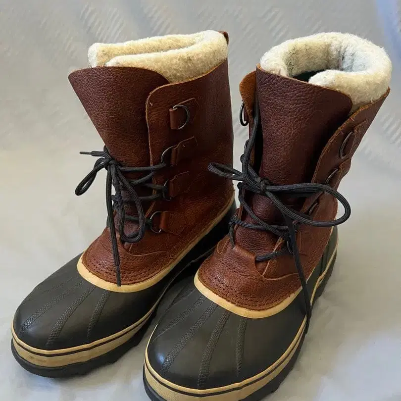 방수 가죽과 보아 안감의 스노우 부츠. - 브랜드: SOREL - 모델명: CARIBOU - 색상: 브라운/블랙 - 소재: 가죽/방수 소재 - 특징: 보아 안감/방수 - 스타일: 스노우 부츠 방문해 주셔서 감사합니다. 사이즈 - USA 사이즈 9입니다. JPN 사이즈 27cm 정도입니다.