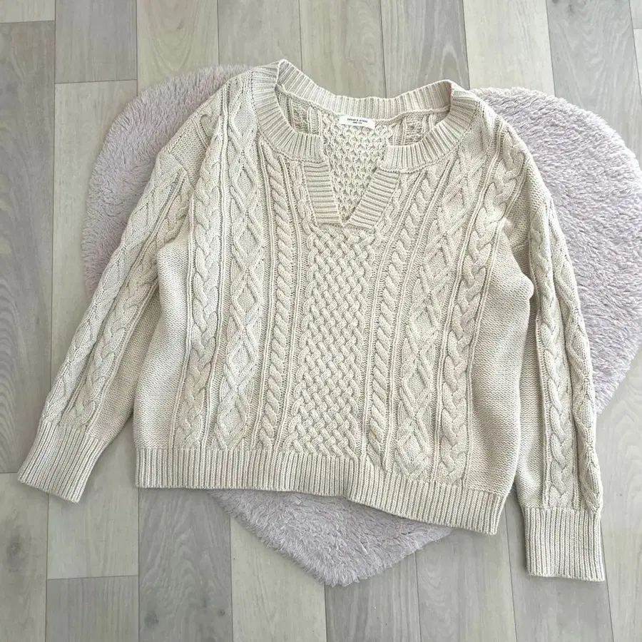 FREAK'S STORE V넥 케이블 짜임 니트 풀오버 루즈핏