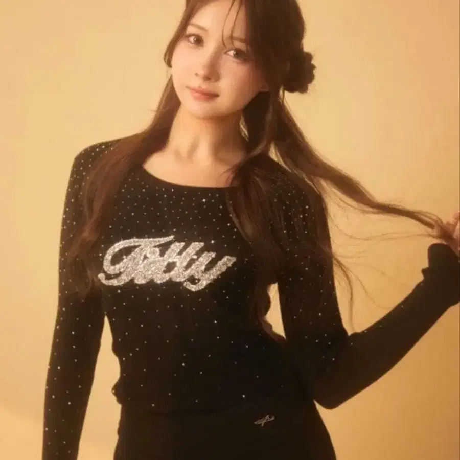 프론트에 대담한 브랜드 로고와 전체에 뿌려진 큐빅이 빛을 받아 반짝이는, 주인공급 탑입니다.