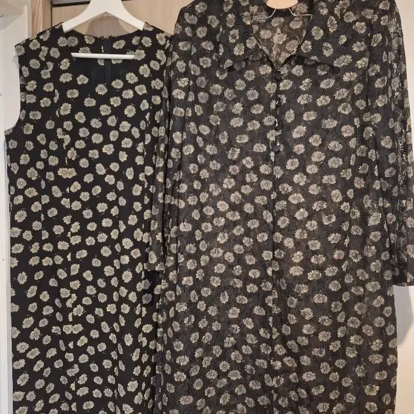 블랙 베이스에 흰색 꽃무늬 셔츠 원피스와 슬리브리스 원피스 세트. - 색상: 블랙 베이스에 흰색 꽃무늬 - 스타일: 셔츠 원피스와 슬리브리스 원피스 세트 - 디자인: 긴팔 셔츠 원피스 - 디자인: 슬리브리스 원피스 방문해 주셔서 감사합니다. 사이즈 15+