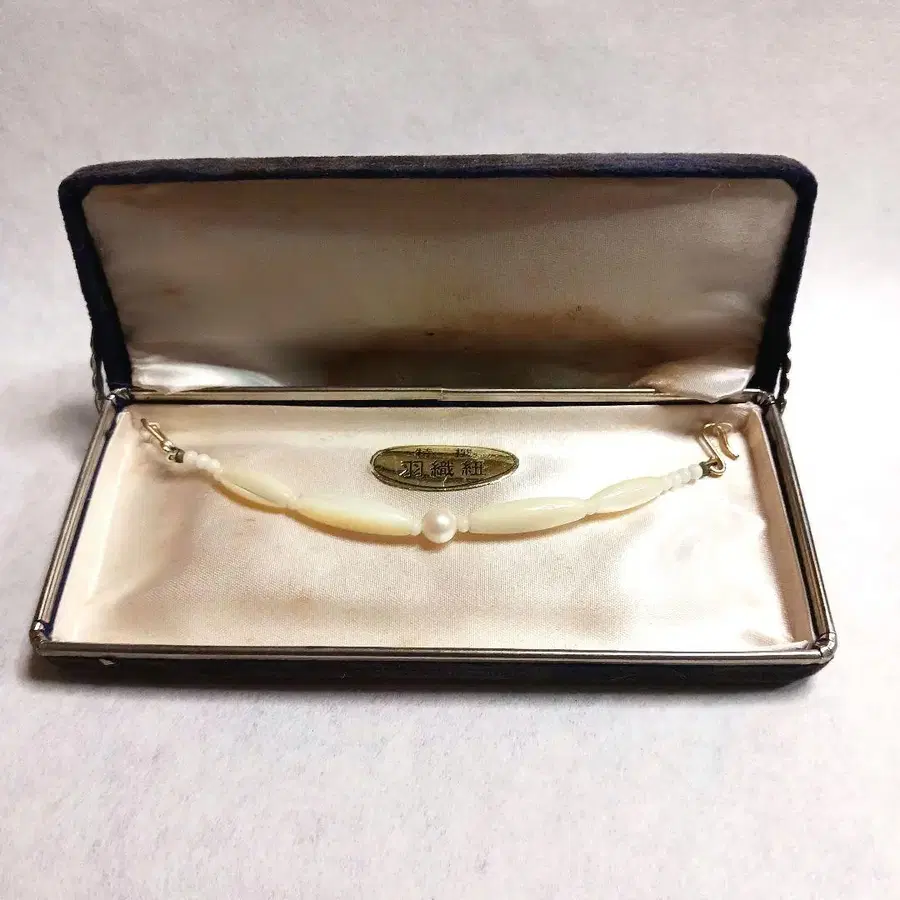 진주와 화이트 컬러 장식이 더해진 엘레강트한 겉옷 끈, 오리지널 케이스 포함. - 소재: 진주와 화이트 컬러 장식 - 디자인: 심플하고 엘레강트 - 부속품: 오리지널 케이스 포함 미사용에 가깝지만 오래된 물품이라 케이스에 얼룩이 있습니다. 방문해 주셔서 감사합니다.