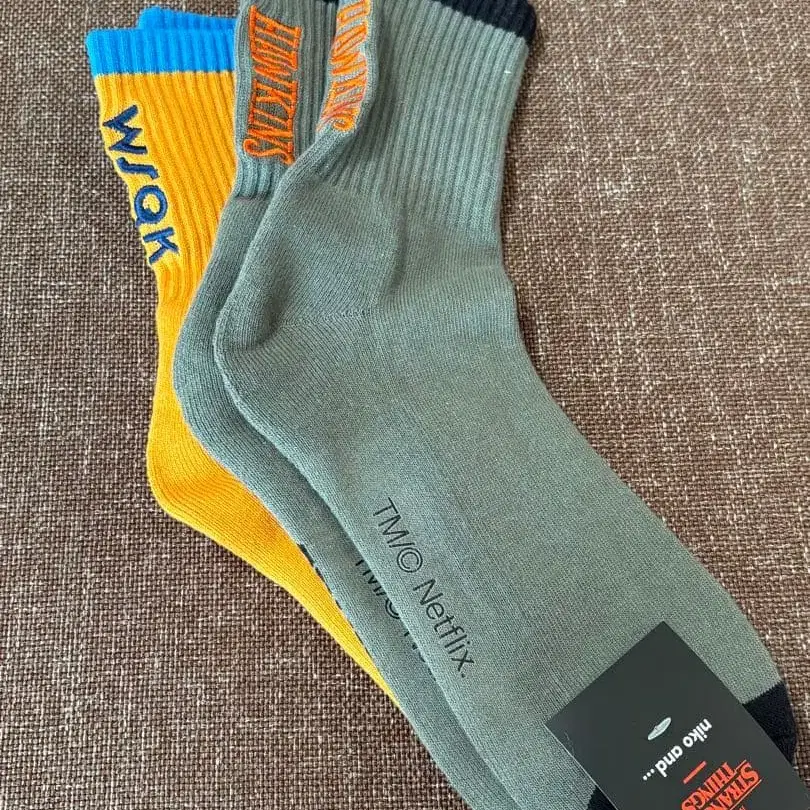 Netflix의 캐릭터 [WAK]이 디자인된 3족 세트 삭스. stranger things와 니코앤드의 콜라보 상품입니다. - 색상: 그레이, 오렌지, 파랑, 옐로우 컬러 - 디자인: 스트라이프, 캐릭터명 [WAK] - 브랜드: Netflix - 수량: 3족 세트 방문해 주셔서 감사합니다.