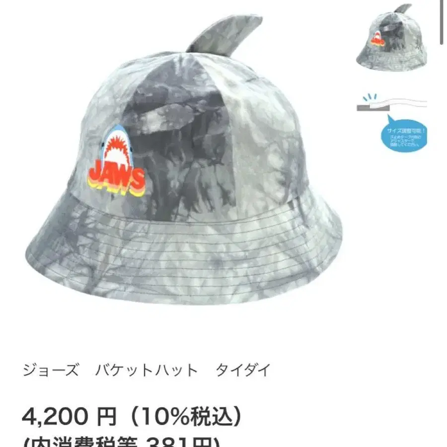 유니버셜 스튜디오에서 1회만 사용 타이다이 패턴의 죠스 버킷 햇 상어 지느러미가 달려 있어 유니크해요 사이즈: 프리 (머리 둘레 57~59cm) 높이 약 11cm 챙 약 7cm 소재: 면, 폴리에스테르
