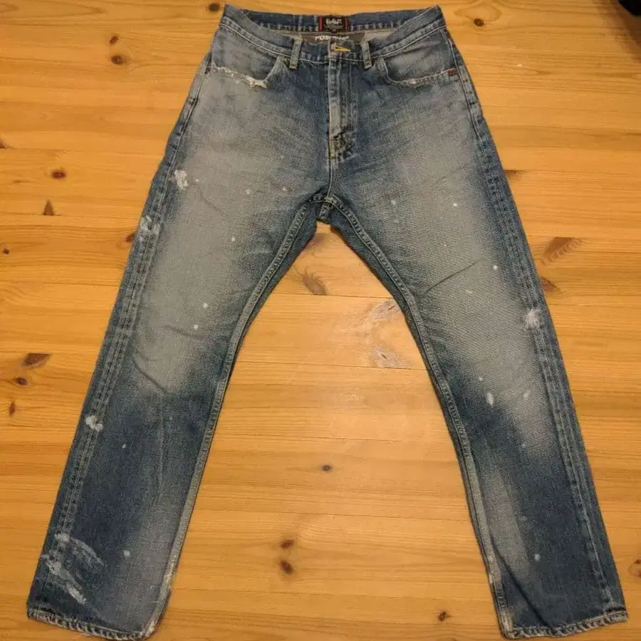 TRUE ROCK 데님 팬츠 청바지 페인트 가공 스트레이트 W34
