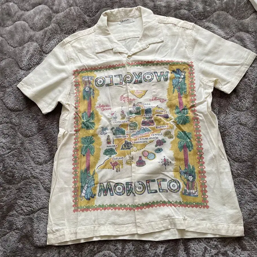 모로코 지도가 그려진 크림색 셔츠. 백 프린트 없음. - 디자인: 모로코 지도가 그려진 프린트 - 브랜드: Desssin - 색상: 크림색 방문해 주셔서 감사합니다. 사이즈 - M 170cm 전후의 분들이 적당히 오버 사이즈로 착용할 수 있다고 생각합니다.