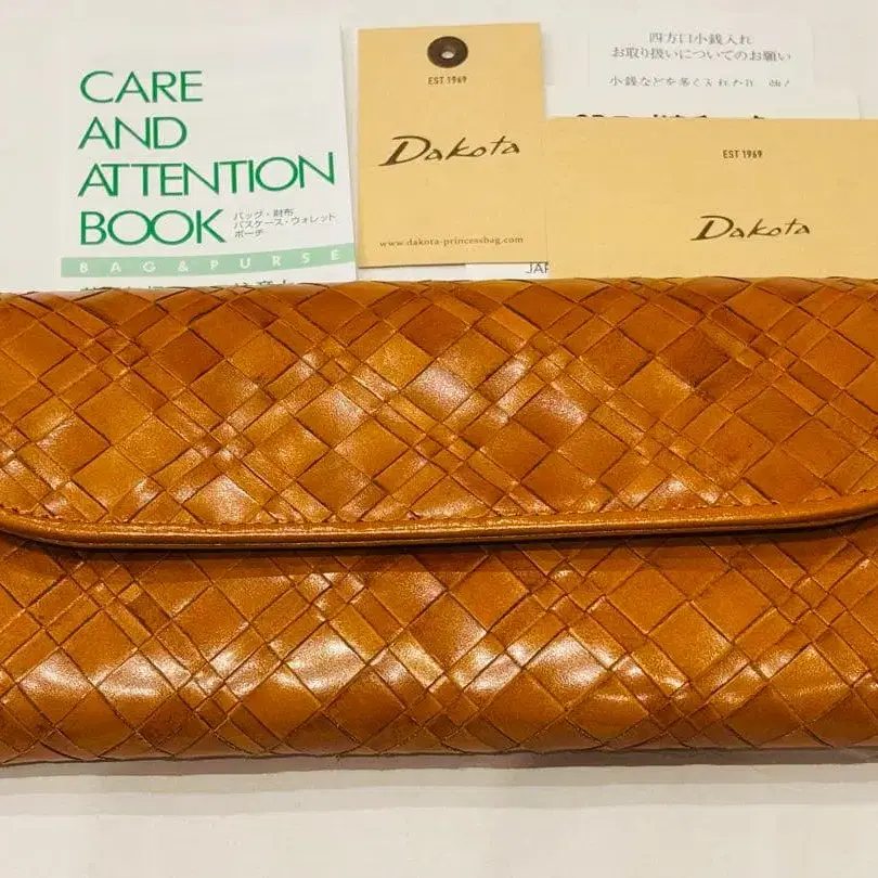 미사용 새상품, 박스 없음 다코타 Dakota 덮개형 장지갑 사이즈 약 세로 9cm x 가로 19.5cm x 바닥 3cm 정가 22000엔 QUA. 소가죽 품번 0030823 컬러 53 머스타드 정가 22000엔 수작업으로 엮은 가죽 메쉬를 그레이징 가공으로 광택을 내어 고급스럽게 완성되었습니다. 손잡이에도 가장자리를 뒤집은 2mm 가죽 끈을 정성스럽게 뜨개질하여 촉감이 좋은 모양으로 되어 있습니다. 세부까지 신경 쓴 시리즈입니다. 가죽 끈을 수작업으로 정성스럽게 엮은 가죽 메쉬 디자인이 눈길을 끕니다. 화려한 광택감과 더불어 고급스러운 인상의 장지갑입니다. 원액션으로 카드, 화폐를 꺼낼 수 있고, 크게 열리는 사방 트임식 동전 지갑은 시인성이 뛰어납니다. 미사용 새상품이지만, 아주 작은 흠집이 있었습니다(마지막 사진). 그 외에는 원래부터 있는 그레이징 가공의 색상 불균일이 부분적으로 있습니다.