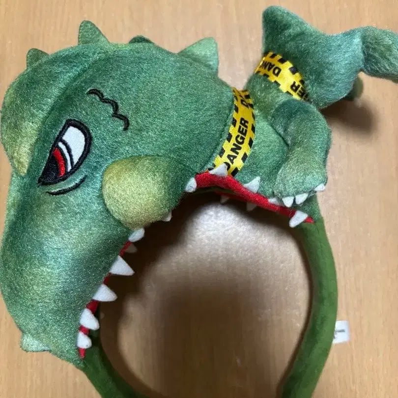 1회 사용했지만 비교적 깨끗한 상태입니다. 정가: 2,000엔 쥬라기 공원 USJ - 디자인: 공룡 머리 디자인 - 색상: 그린 컬러 - 소재: 봉제 인형 소재 - 특징: 빨간색 안쪽과 노란색 경고 라벨 - 사이즈: 프리 사이즈
