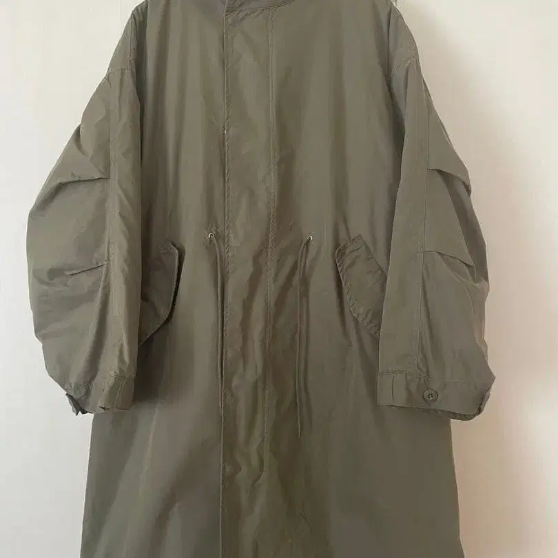 올리브색 후드 부착 모즈 코트