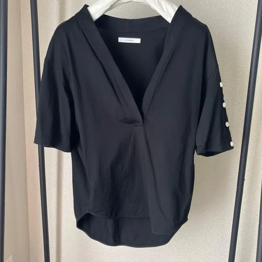 CINOH 2018년 봄/여름 정가: 불명 (25,000엔 이상이었던 것 같습니다) 택 분실이지만, 미사용. 소매는 버튼식 슬릿 있음. 라운드 엣지 디자인으로, 뒤 기장이 김. 사이즈 - 38 (S~M 사이즈) 컬러 - 네이비 계열 컬러/넥 - V넥 비침 - 비침 없음. 얼룩, 찢김, 냄새 등 - 없음.