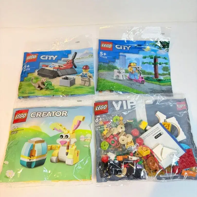 낱개 판매 불가 레고 팩 상품 4세트 - 세트 내용: LEGO CITY, LEGO CREATOR, LEGO VIP - 대상 연령: 5세 이상 - 패키지 상태: 미개봉 - 수량: 4세트 방문해 주셔서 감사합니다.