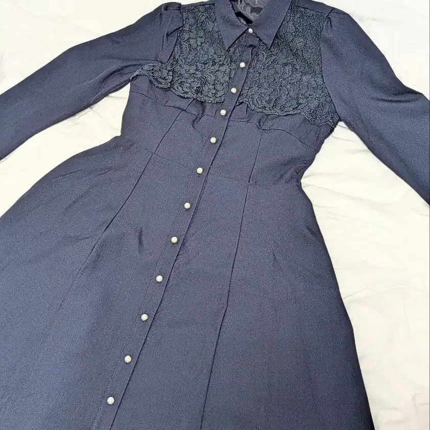 tocco 요크 레이스 절개 백 레이스업 셔츠 원피스 네이비
