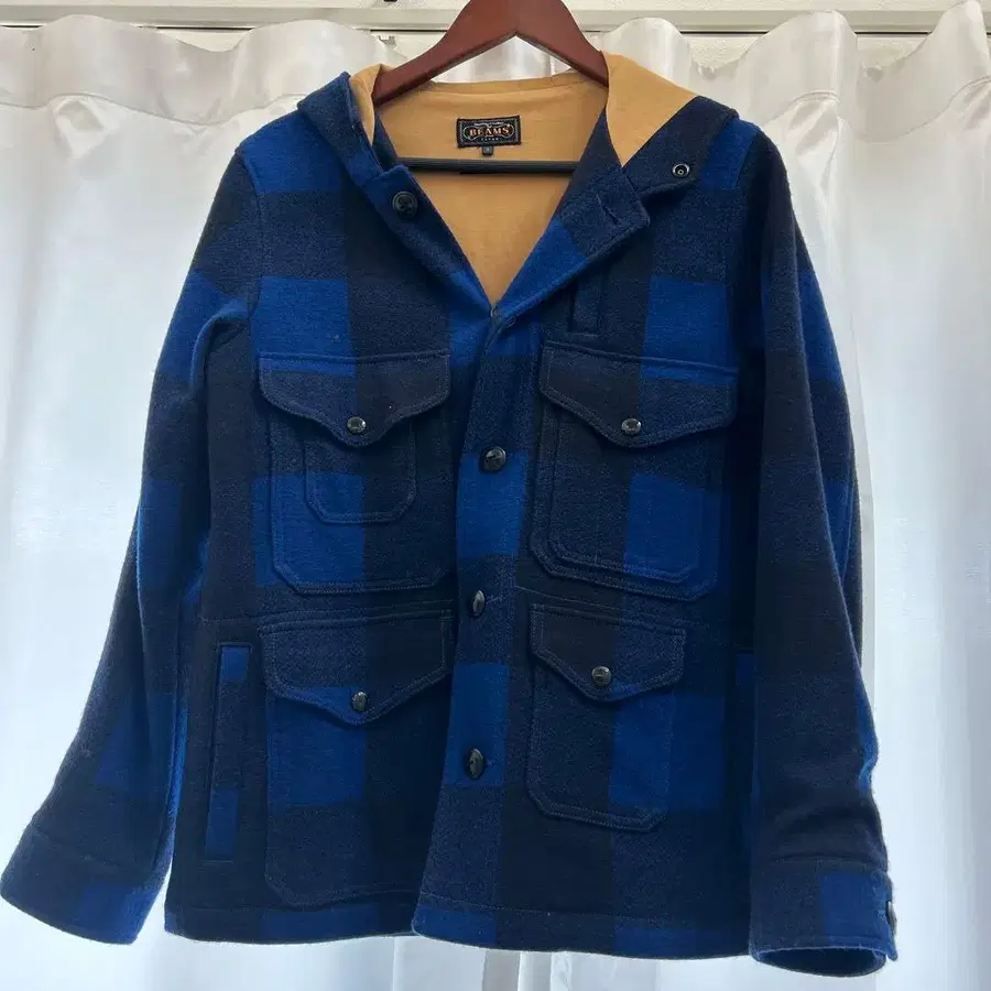 BEAMS 후드 부착 체크 자켓