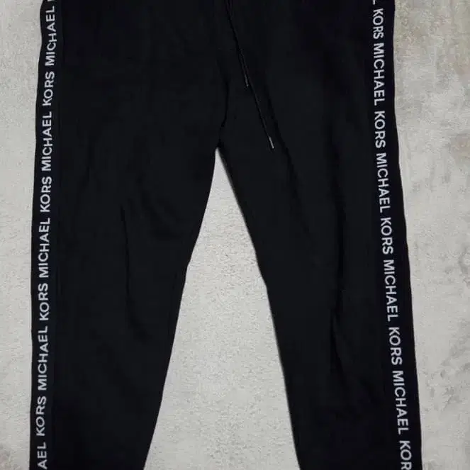 원단의 블랙에 화이트 로고가 있는 심플한 팬츠입니다.