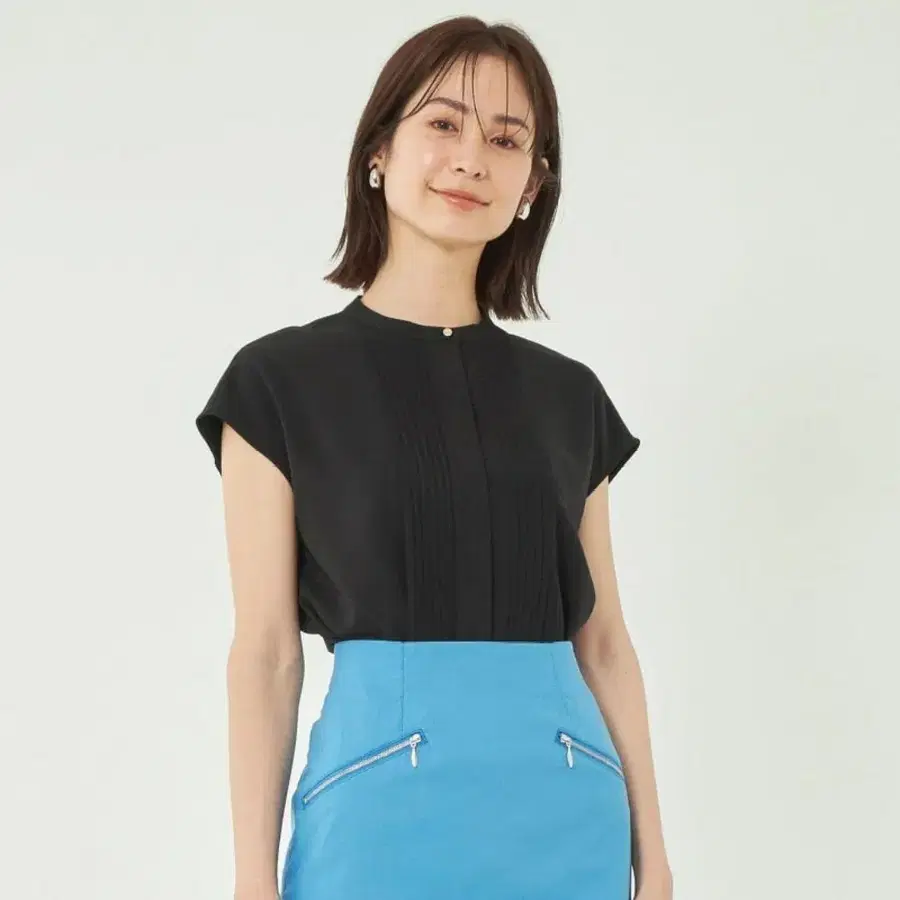 유나이티드 애로우즈 핀턱 스탠드넥 프렌치 슬리브 BLACK