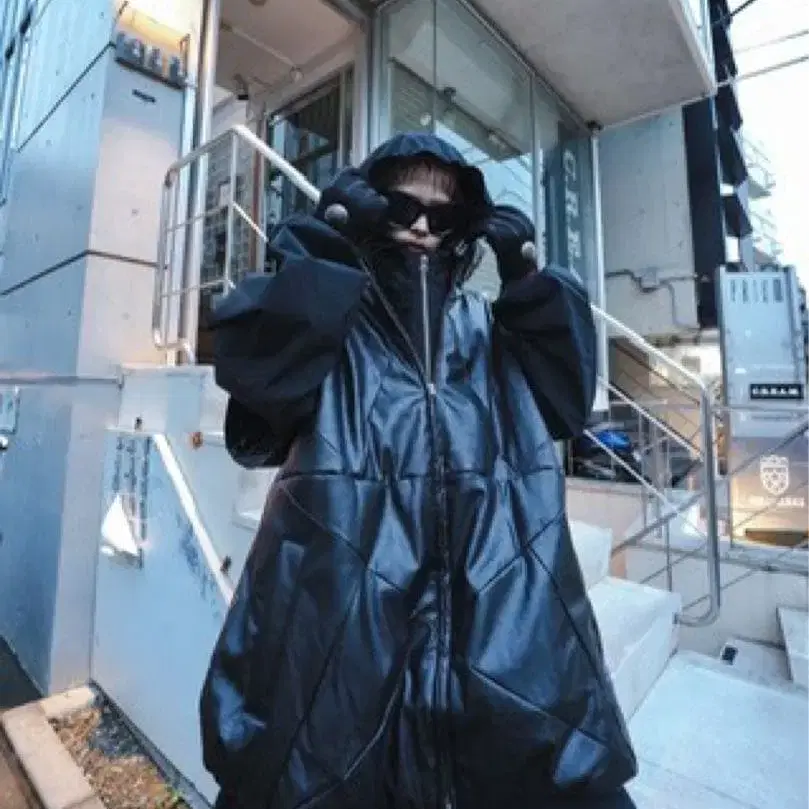 새상품급 어반 리서치 퀼팅 자켓 인조 가죽 블랙 노카라