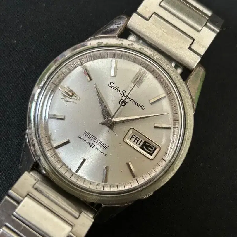 실버 다이얼에 날짜와 요일 표시 기능을 갖춘 60년대 자동 시계. - 브랜드: Seiko - 모델명: 스포츠매틱 5. 6619-7930 - 방수 기능: Waterproof - 날짜 표시: Date Display - 요일 표시: Day Display 팔 둘레 본체 포함 18-9cm 전후 다이얼 9시 부근 흠집 크라운 푸시로 날짜 요일은 침 이동 오버홀에 관해서는 불명 평평하게 놓은 상태로 반나절 정도 작동 확인했지만 오래된 상품입니다. 향후 작동을 보증하는 것은 아닙니다. 양해 부탁드립니다. 방문해 주셔서 감사합니다.