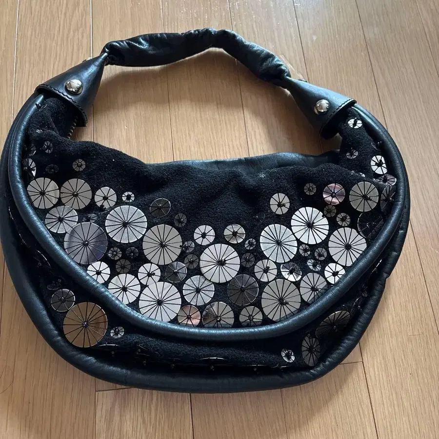 블랙 원형 장식 숄더백