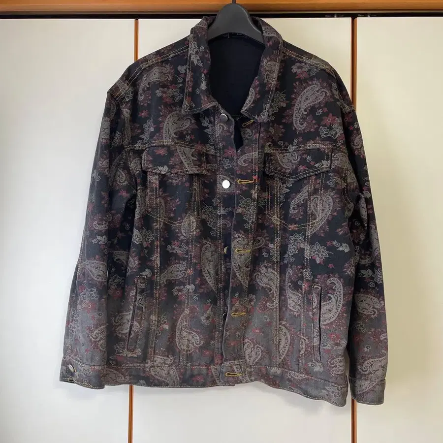 페이즐리 무늬의 데님 자켓, 유니크한 디자인이 매력적입니다. - 브랜드: URBAN EDGE - 디자인: 페이즐리 무늬 - 색상: 블랙/그레이/레드 - 스타일: 데님 자켓 - 타입: 긴팔 - 백 디자인: 플라워 무늬 방문해 주셔서 감사합니다.
