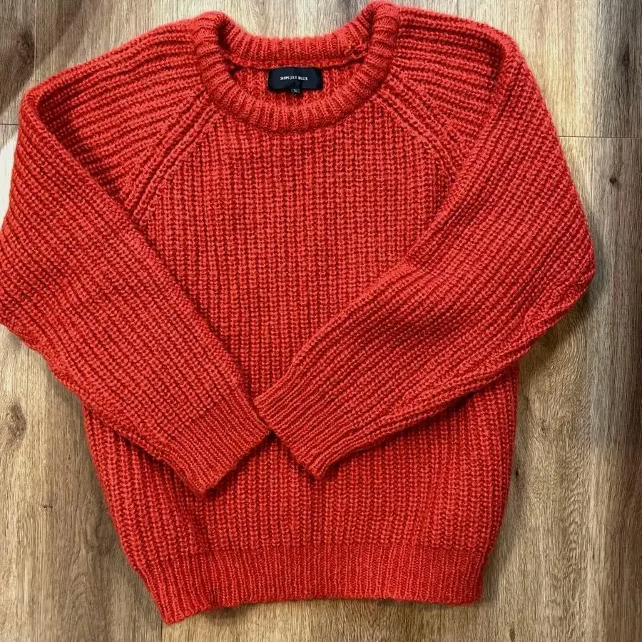 아크릴과 모 혼방 소재로, 따뜻한 느낌의 오렌지/레드 남성용 스웨터입니다. 사진보다 실물이 더 복슬복슬한 소재감을 가지고 있습니다.