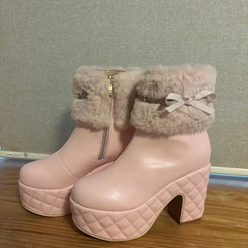 YOSUKE 공식 온라인 샵에서 구매한 퍼가 달린 핑크 부츠로, 리본 장식이 특징입니다. 2주 정도 전에 구매했지만, 결국 신지 않을 것 같아 판매합니다. - 색상: 핑크 - 소재: 합성 피혁 - 굽 높이: 하이힐 - 디자인: 퍼 포함, 리본 장식 - 스타일: 부츠