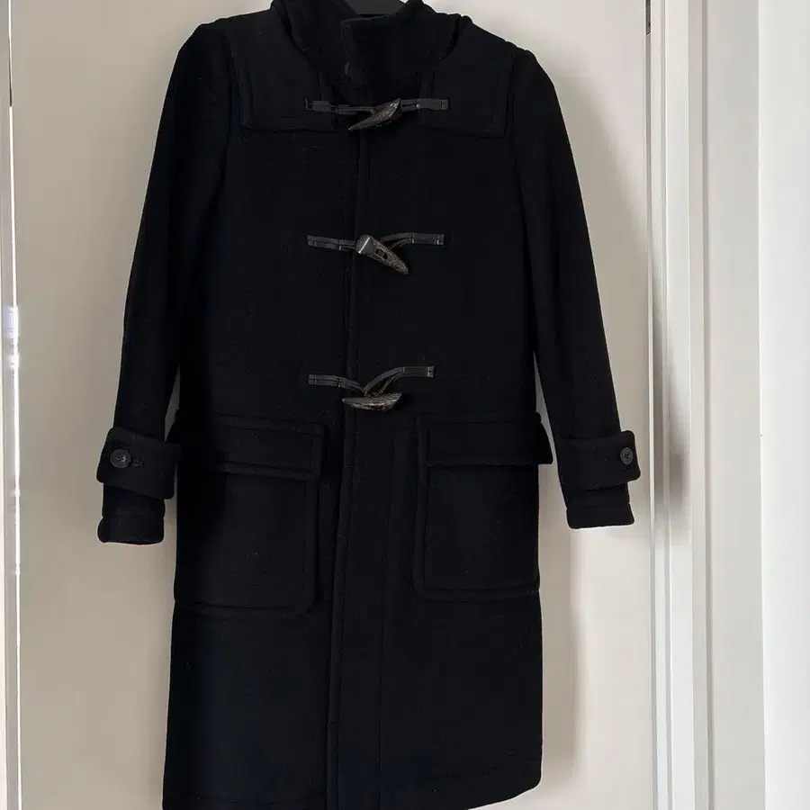 탄탄한 원단의 더플 코트입니다. 심플하고 고품질인 디자인은 유행을 타지 않아 오래 착용할 수 있습니다. 몇 년 전에 구매하여 한동안 착용하지 않아 판매합니다. 양모 90% 더플 버튼 부분 소가죽 사이즈 - S 컬러 - 블랙 계열 기장 - 미들 얼룩, 찢김, 냄새 등 - 없음