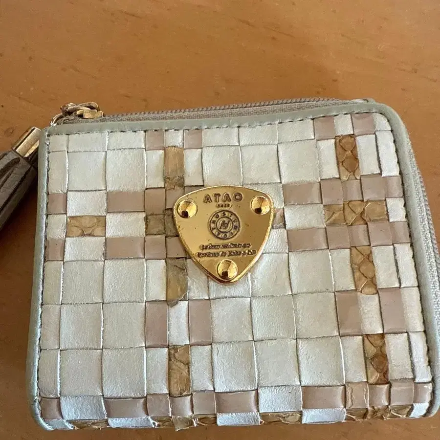 상자 없음 뜨개질 디자인의 가죽 접이식 지갑, 화이트와 베이지 콤비네이션. - 브랜드: ATAO - 소재: 가죽 - 디자인: 뜨개질 디자인 - 색상: 화이트/베이지 - 내부 포켓: 카드 포켓 2개 방문해 주셔서 감사합니다.