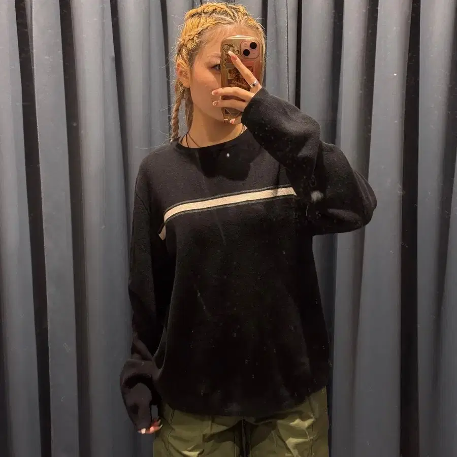 • 올리브 그린 스트라이프 니트 스웨터