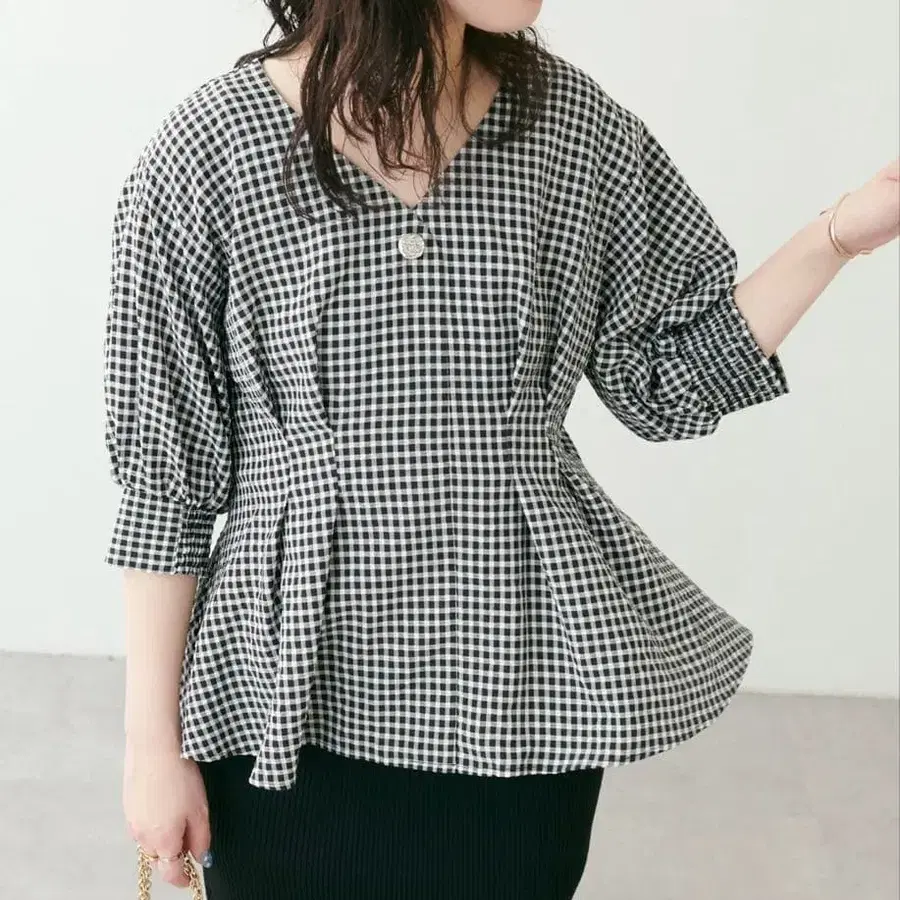 미리 봄옷은 어떠신가요 ☆ 페플럼 실루엣의 어른스럽고 고급스러운 블라우스 osono 페플럼 블라우스의 반팔 버전 적당한 기장감과 페플럼 실루엣 프론트의 턱으로 허리를 잘록하게 하고 밑단으로 갈수록 퍼지는 예쁜 실루엣. 프론트와 소매의 버튼으로 뒤쪽에 개더가 있으며, 소매도 여유가 있어 착용감이 좋을 것 같습니다. 1회 사용만 했습니다. 구매자 사이즈가 맞지 않아 판매합니다. 눈에 띄는 얼룩, 올풀림, 보풀 등 전혀 없습니다. ※ 여분의 버튼 없음 배송비 포함 가격입니다. 기장 65cm 화려한 인상으로, 봄/가을에 사용할 수 있을 것 같습니다. - 디자인: 깅엄 체크 - 스타일: 페플럼 - 소매 길이: 반팔 - 사이즈: FREE 반려동물 키우지 않습니다. 동거인 중 흡연자 없습니다. 검토 부탁드립니다 ☆