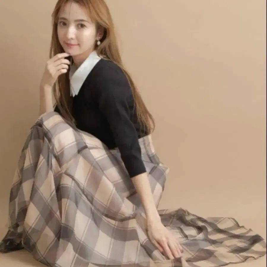 체크 오간자 스커트