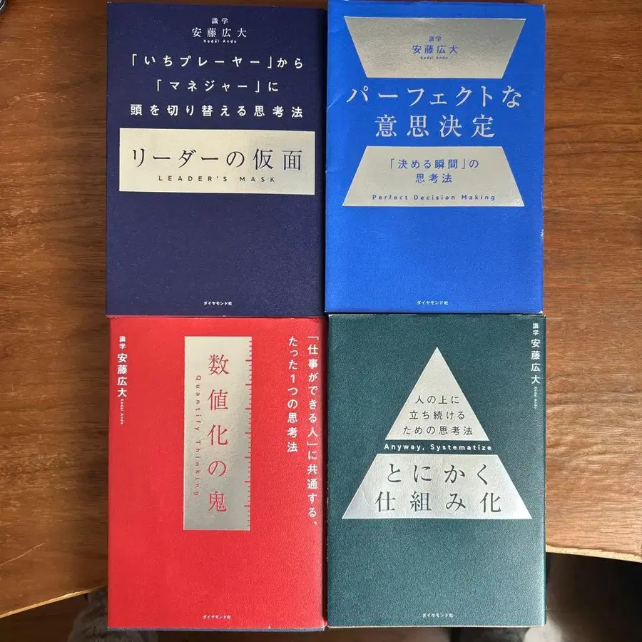 다 읽어서 판매합니다. 필기 없음, 눈에 띄는 얼룩 없음, 낱개 판매 불가, 즉시 구매 환영입니다. 상태는 비교적 좋다고 생각합니다. - 타이틀: 리더의 가면 - 타이틀: 퍼펙트한 의사결정 - 타이틀: 구치카의 귀신 - 타이틀: 어쨌든 시스템화 - 권수: 4권
