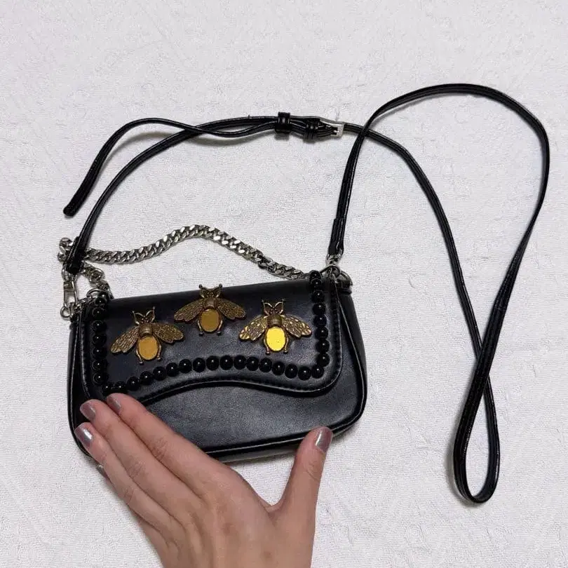 벌 장식 블랙 백 갸루 스타일 Y2K
