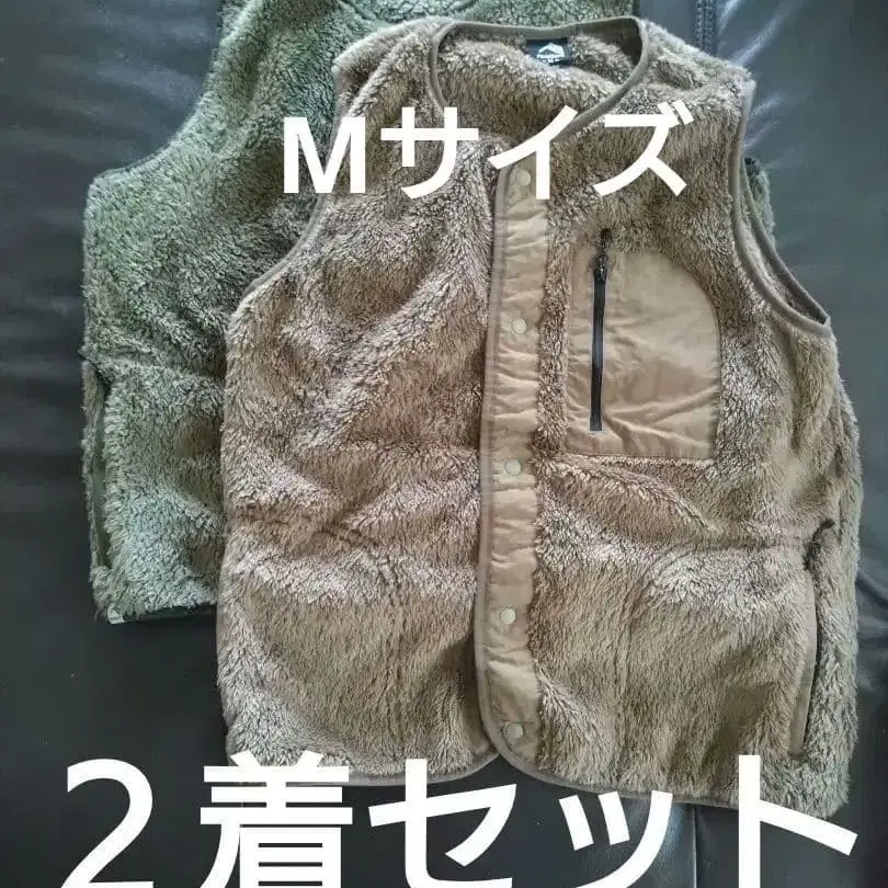 브라운과 그린 베스트, M 사이즈, 지퍼 포켓 부착.