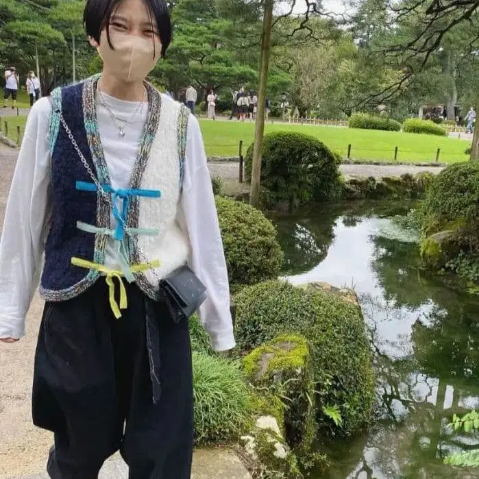 울 패턴 니트 베스트 blue willow