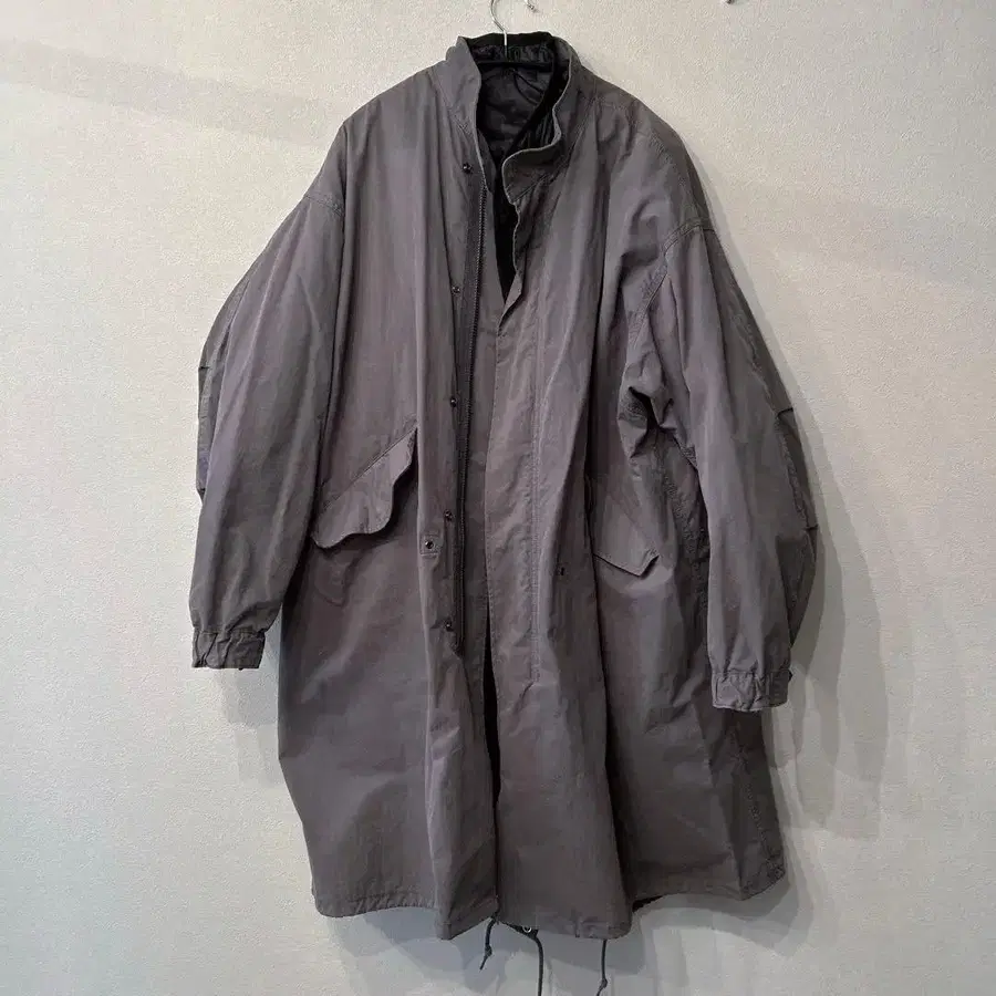 나일론 소재의 그레이 모즈 코트, 프론트 버튼과 포켓이 있습니다. - 색상: 그레이 - 스타일: 모즈 코트 - 소재: 나일론 - 특징: 프론트 버튼, 포켓 부착 - 사이즈: L 라이너가 포함되어 있습니다.