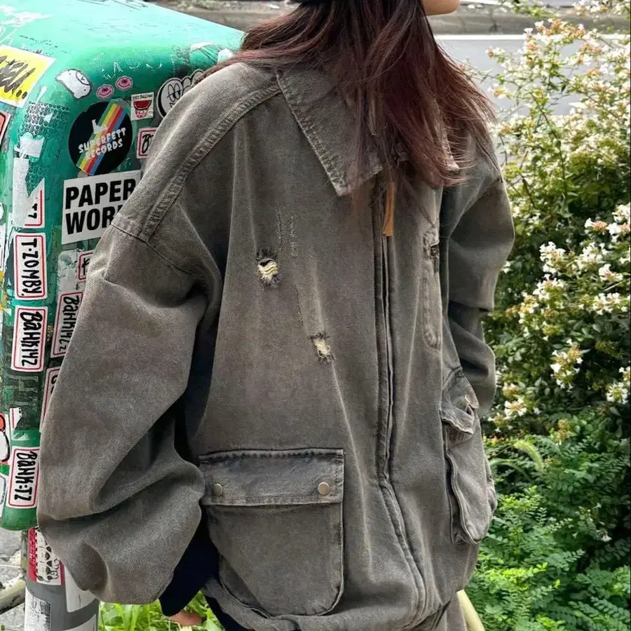 데님 자켓 프린트 데미지 가공