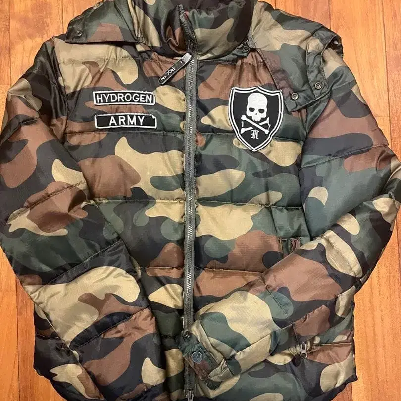 카모플라쥬 디자인의 HYDROGEN 다운 자켓, 후드 부착과 패치가 특징. - 브랜드: HYDROGEN - 스타일: 카모플라쥬 - 특징: 후드 부착 - 사이즈: S - 디자인: 패치 부착 방문해 주셔서 감사합니다. 사이즈가 S이므로, 신장 165-173cm 전후가 베스트 사이즈입니다.