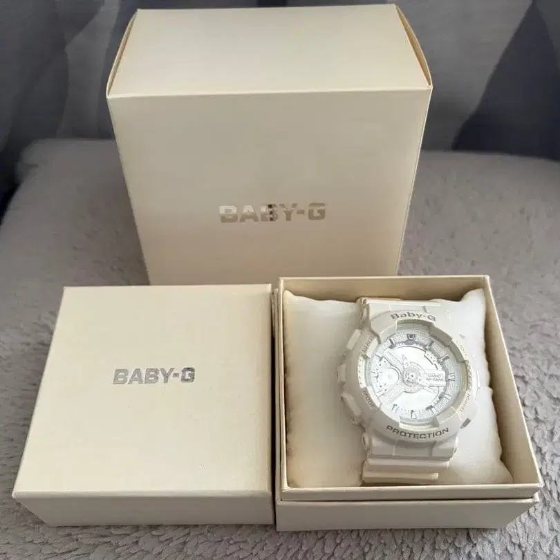 자동 번역되었어요. 원문보기화이트 BABY-G G-MS 모델, 수지 밴딩, 방수 기능.