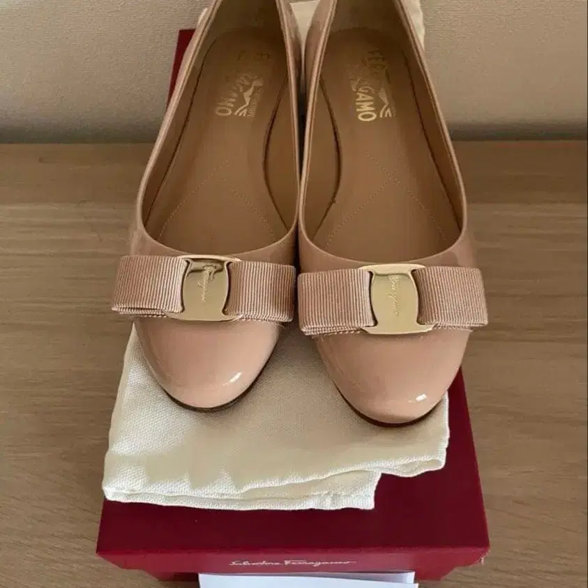 페라가모 플랫슈즈, VARINA 베이지 색상, 사이즈는 5 1/2 입니다. 23cm 상당입니다. 럭셔리함이 넘치는 에나멜 펌프스는 가을/겨울 시즌의 스타일링을 화려하게 연출해 줍니다. 매치하기 쉬운 베이지 컬러도 매력적입니다. 이탈리아 공식 매장에서 구매한 정품입니다.