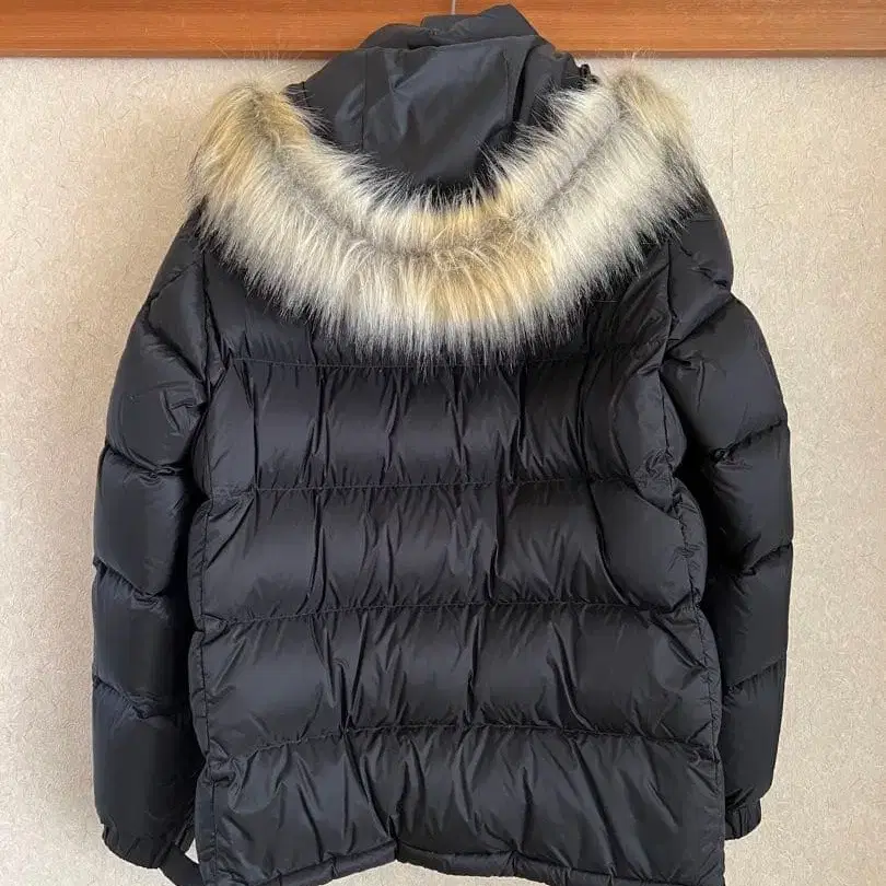 퍼가 달린 블랙 다운 자켓, 퀼팅 디자인으로 스타일리시합니다. - 색상: 블랙 - 후드: 퍼 포함, 탈부착 가능 - 포켓: 앞면에 2개의 포켓 - 디자인: 퀼팅 디자인 - 퍼 색상: 그레이와 베이지 믹스 기장: 70cm 방문해 주셔서 감사합니다. 사이즈 - L